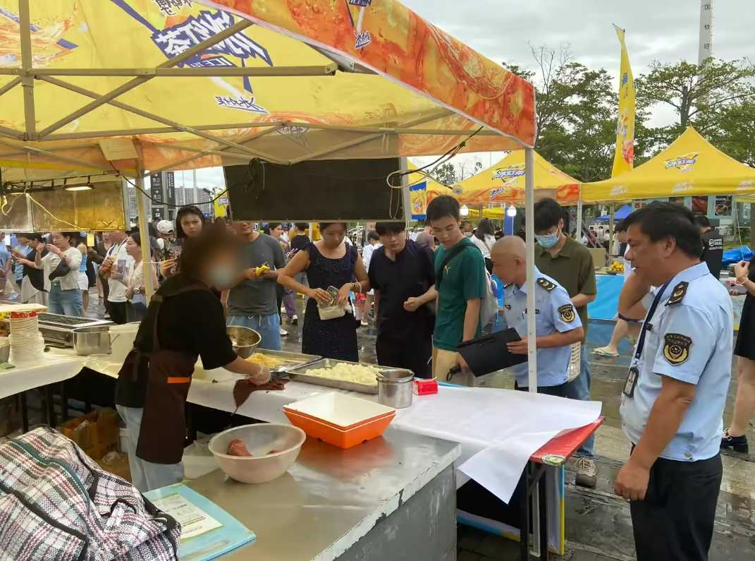 颠末快速检测,督促运营者认实落实食物平安办理要求。共查抄体育馆美食街32家次食物售卖摊位,全程对体育馆的美食街食物发卖摊位的食物原料存储、现场卫生、人员办理等进行监管,要求从业人员加强人员健康卫生办理,